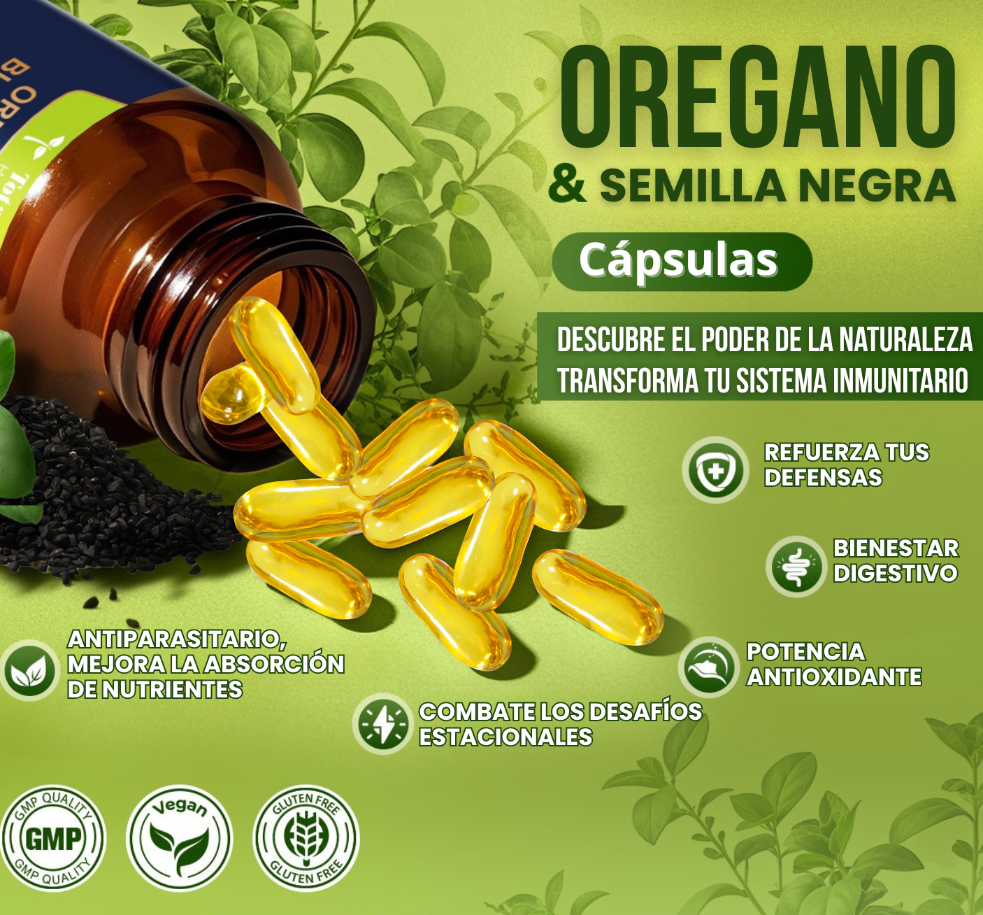 No solo es aceite de orégano. Te ofrecemos 11 ingredientes que refuerzan tus defensas naturales.