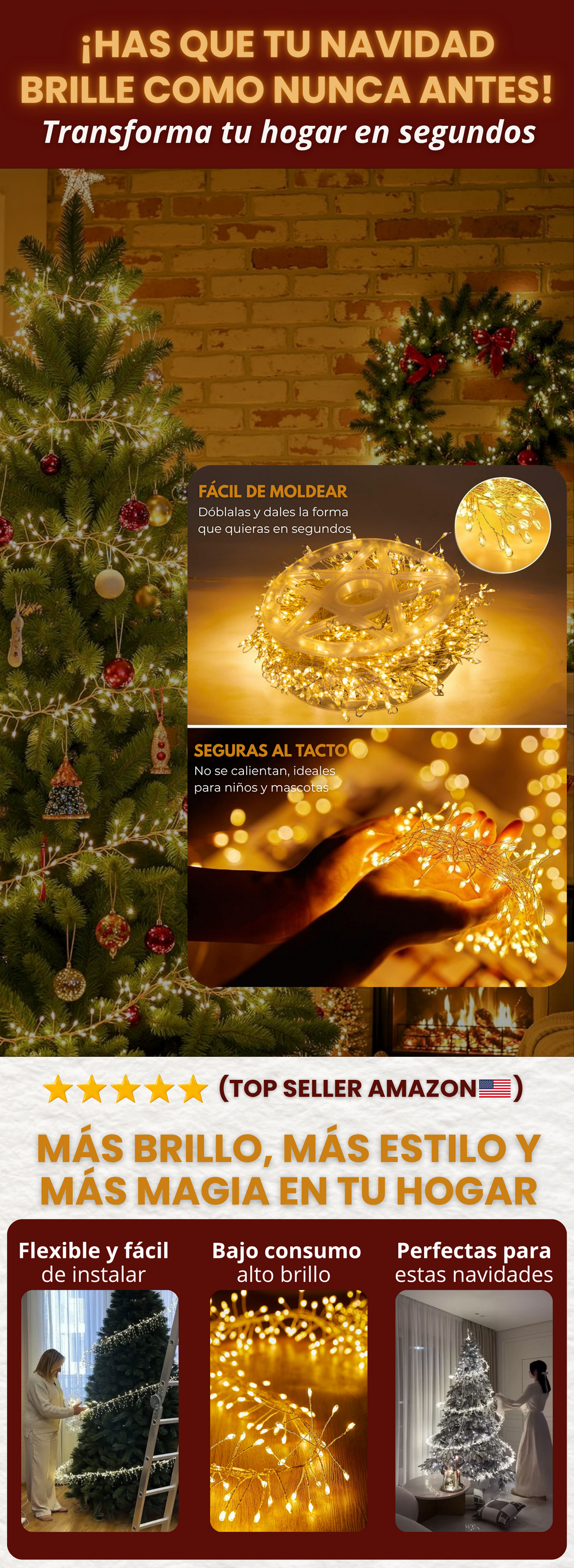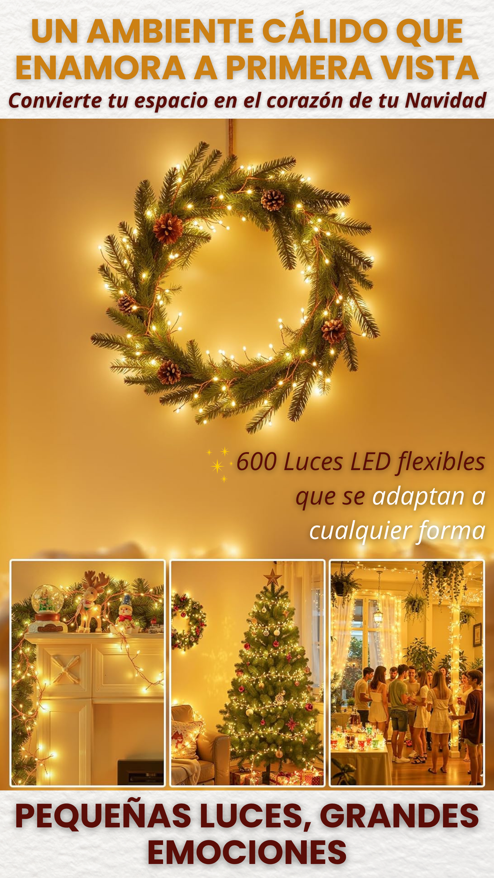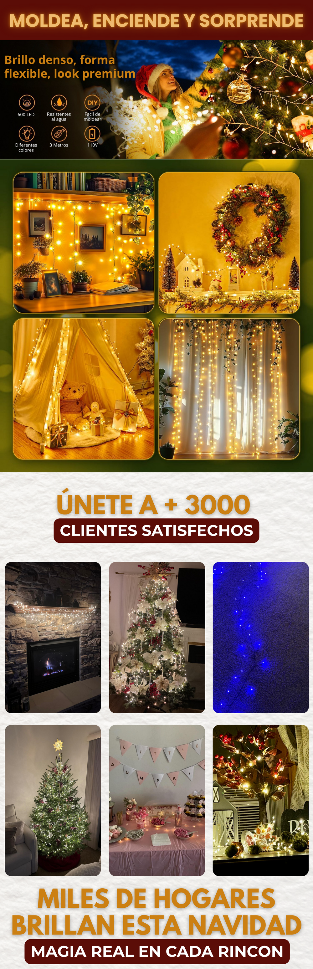 🌟 600 luces led, Instalación en segundos
